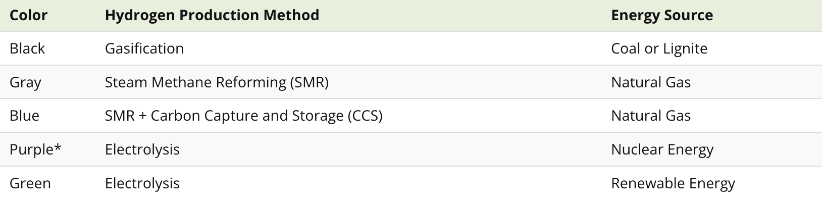 *Purple hydrogen is also referred to as red or pink hydrogen.