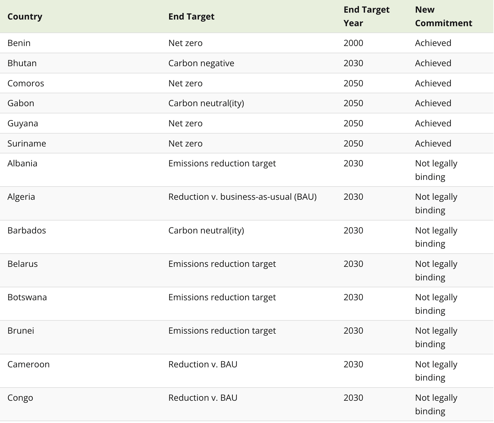 While Comoros, Bhutan, Gabon, Suriname, and Guyana claim to have already achieved net zero, several major countries lack commitment.