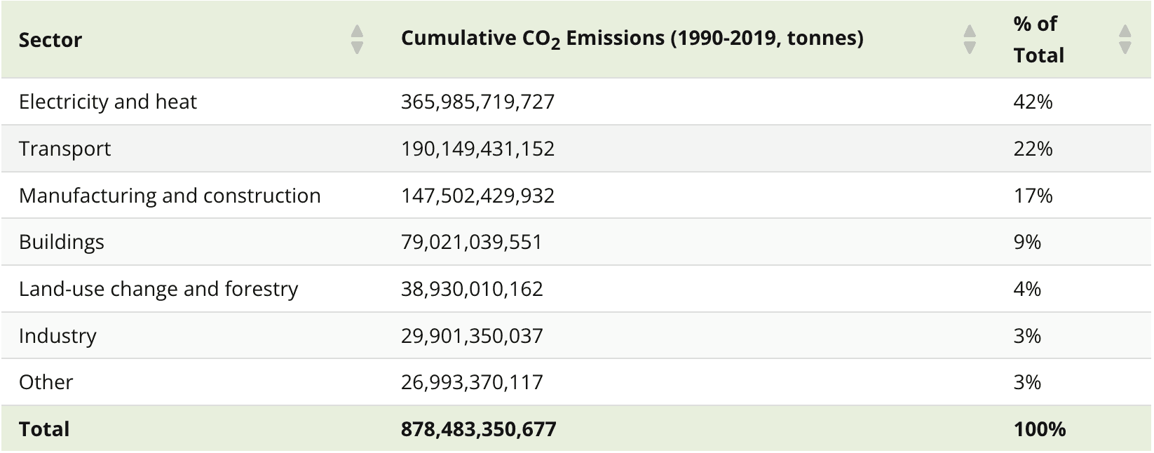 For a better understanding of how humans have contributed to the crisis, here’s a look at historical CO2 emissions by sector: